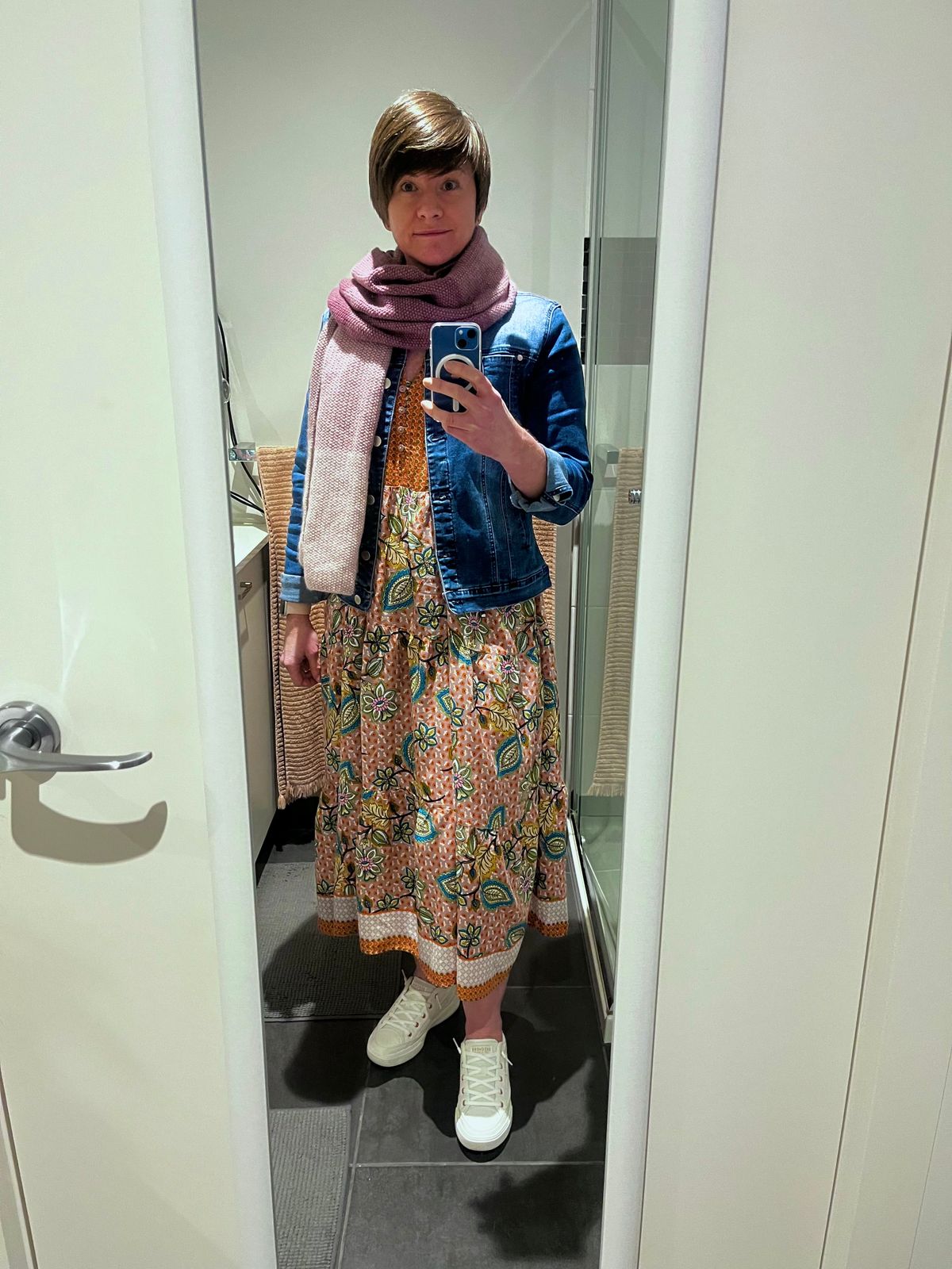 This is the only denim jacket I have in my wardrobe at the moment because I don’t need any others! I can wear this denim jacket with almost anything and it’s so soft and comfortable! Im usually a size 10 with tops and a size 10 in this jacket fits well. It’s stretchy enough that I can wear long sleeved tops and light jumpers underneath without having to size up.